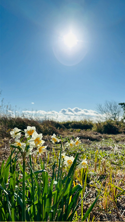 年末、大掃除の合間を縫って、千葉の内房の突端までドライブに行きました。真冬ですが、ラッパ水仙が穏やかな日の光に包まれ、春の訪れを知らせてくれているように思いました。都内のアスファルトからは灼熱しかもらいませんが、ここでは、大地と天、そして海から鋭気をもらいました。自然は私たちから「考えすぎ」という老廃物をデトックスさせる効能があるのだと思います。